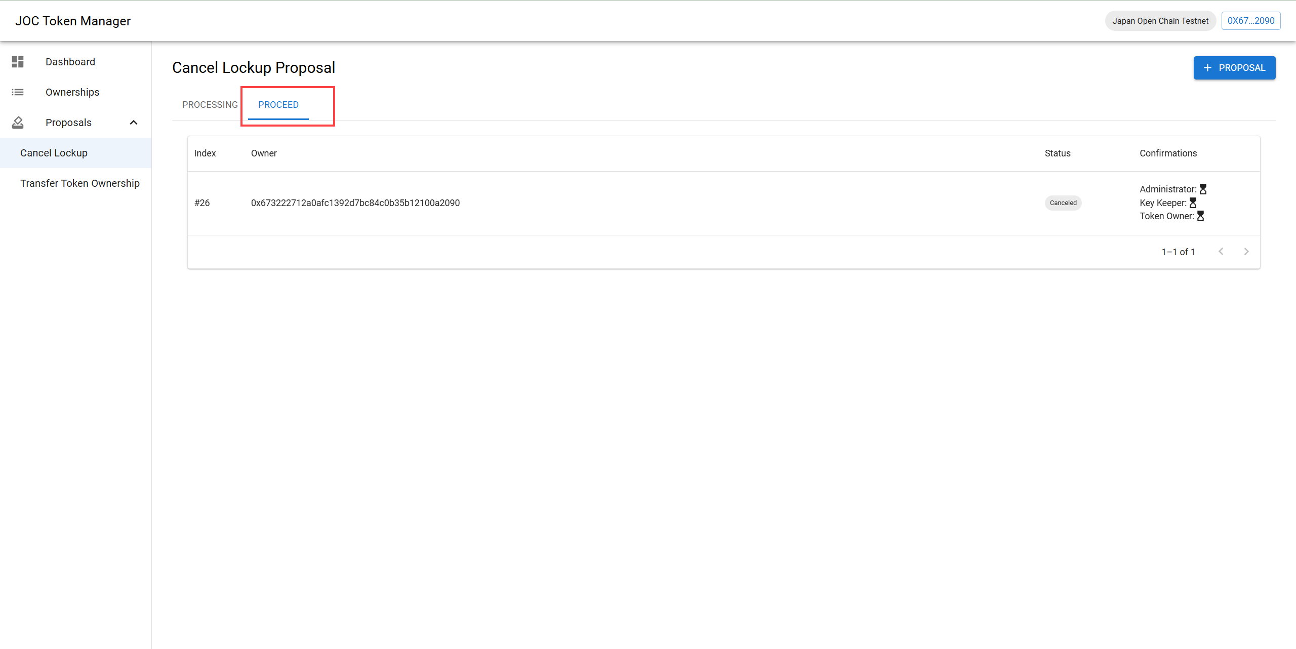 - The Cancel Lockup Proposal requests that have been approved will be displayed in the Proceed tab.